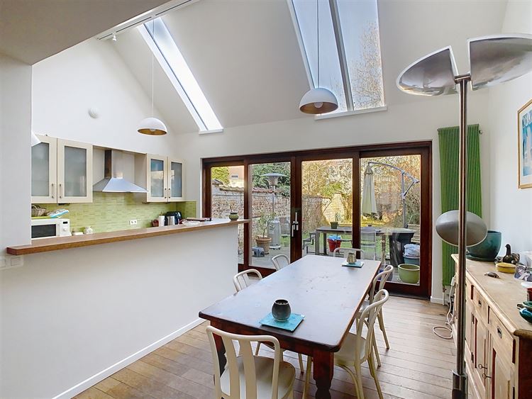 Située dans le quartier recherché du Dries, cette belle maison bourgeoise de 1904 sise sur un terrain de 2,2 ares offre un cadre de vie agréable, à proximité immédiate de la gare, des écoles et des commerces. Le rez-de-chaussée se compose d'un hall d'entrée avec toilette invités, d'une grande cuisine lumineuse ouverte sur la salle à manger avec accès direct à la terrasse et au jardin, d'un salon avec cassette plein de charme, ainsi que d'un bureau de 16 m². Au premier étage, le palier dessert deux belles chambres de 15 m² et 16 m², ainsi qu'une salle de bain (douche, lavabo et toilette). Au deuxième étage, vous trouverez une 3ème chambre de 15 m² avec sa salle de bain, une 4ème chambre avec bureau en mezzanine, ainsi qu'une salle de douche. Le sous-sol comprend 2 grandes caves, idéales pour le rangement. Ayant bénéficié de plusieurs rénovations (agrandissement de la cuisine avec permis, rénovation intérieure, toiture, sablage de la façade), cette maison a conservé son beau plancher, son escalier de caractère et sa belle hauteur sous plafond. Faire offre à partir de 710.000 (sous réserve d'acceptation des propriétaires) À découvrir sans tarder ! Infos et visites au 0474 066 066