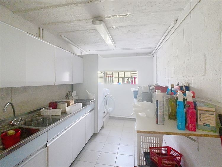 Le sous-sol, en rez-de-jardin, comprend un garage aménagé en salle de jeux, une lingerie, un bureau, une cave ainsi qu'une grande chaufferie avec une chaudière à condensation Vaillant.