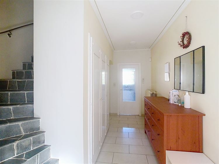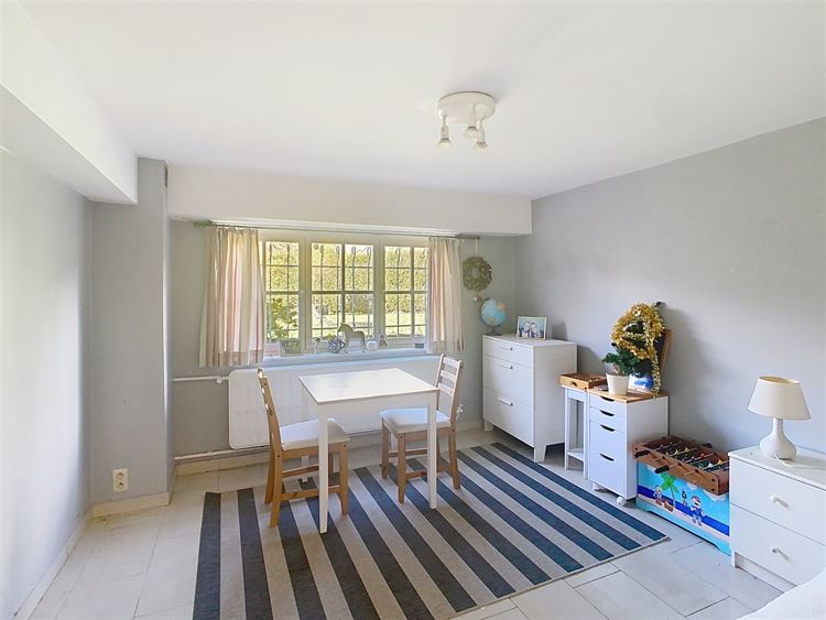 Au rez-de-chaussée, vous serez accueilli par un hall d'entrée avec vestiaire menant à un lumineux séjour de ± 42 m² agrémenté d'un feu ouvert, ainsi qu'à une cuisine entièrement équipée. Ce niveau comprend également deux chambres de ± 14 m² chacune et une salle de douche moderne, équipée de deux lavabos et d'une grande douche