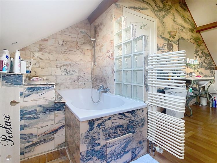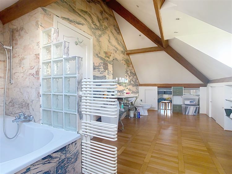 A l'étage, une vaste chambre parentale de ± 35 m² avec son dressing et une spacieuse salle de bains avec baignoire.