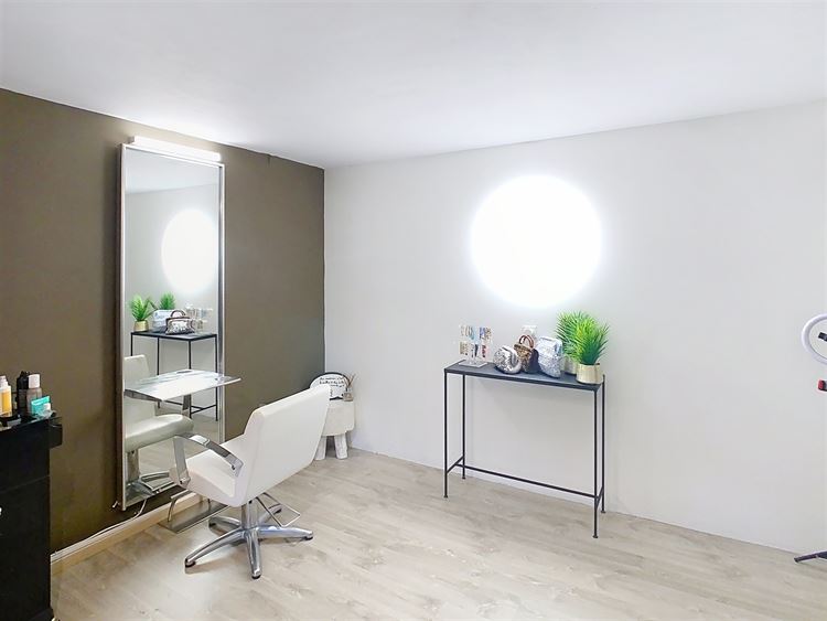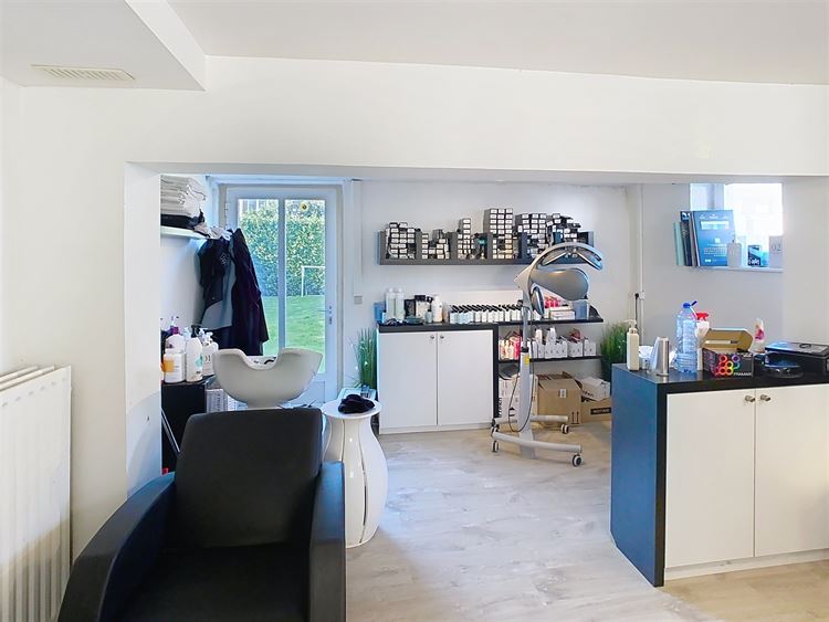 Au rez-de-chaussée, vous découvrirez un vaste hall d’entrée d’environ 17 m² avec vestiaire et toilette invités. Un grand garage de 35 m², actuellement aménagé en salon de coiffure, offre de multiples possibilités d’utilisation et bénéficie d’un accès direct au jardin. Ce niveau comprend également une chaufferie ainsi qu’une salle de douche.