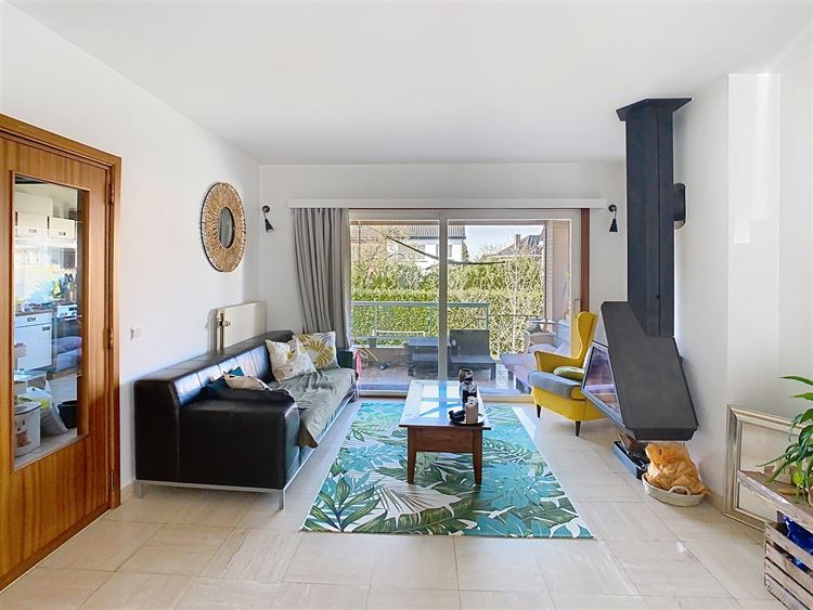 Le premier étage propose un bel espace de vie composé d’un lumineux séjour en L d’environ 45 m² avec feu ouvert, ainsi qu’une grande cuisine équipée. Ces deux espaces donnent accès à une agréable terrasse couverte de 8 m², avec escalier menant au jardin.